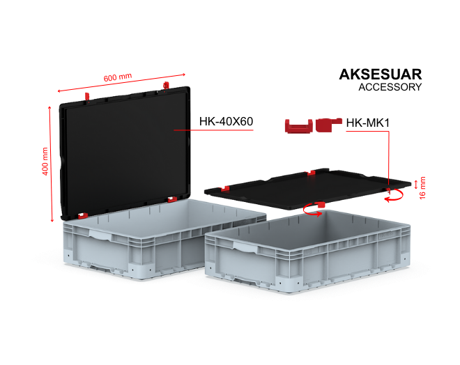 <li>It can be used with a locked lid by attaching the HK-40X60 lid and HK-MK1 lock set.</li>