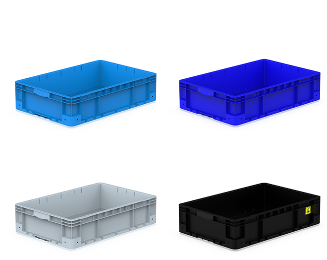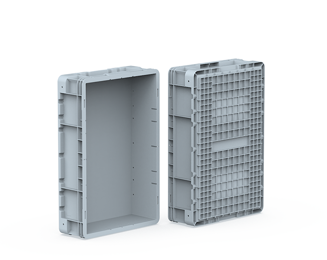 <div>Plastic crate with closed sides and bottom.</div>