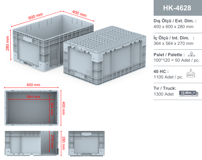 HK-4628 400X600X280 PLASTIC CRATE SHARE ON SOCIAL MEDIA