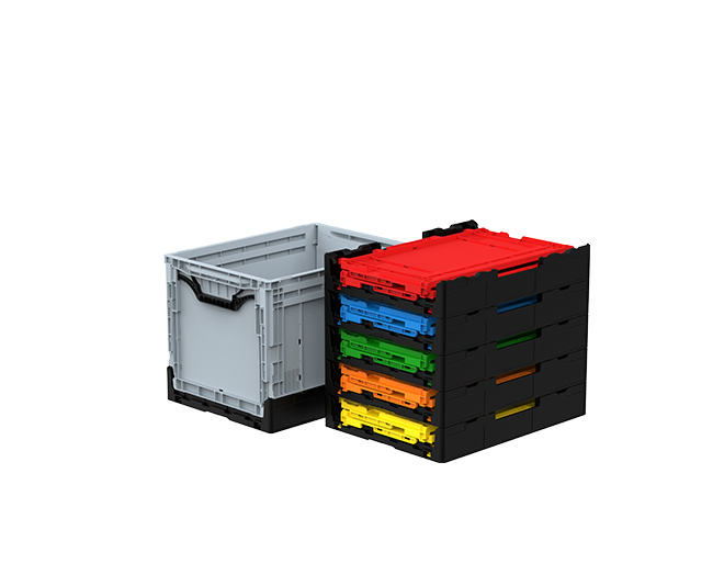Dimensions (Open): 395 x 595 x 400 mm Dimensions (Folded): 300 x 400 x 73 mm (saves space) Lid Design: Protects products from external factors (dust, moisture, impact). Kanban Label Slot: Facilitates stock and production management. Label and Barcode Spaces: Provides suitable areas for product information and barcode tracking. Sealable Feature: Ensures safe transportation and storage of products. Barcode Capability: Barcodes can be added to the label areas for quick and easy tracking. Durable Plastic Material: Long-lasting, resistant to breakage. Ergonomic Design: Offers easy handling and stacking options. Eco-Friendly: Made from recyclable materials.