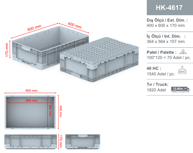 <div><strong>Plastik yanları ve altı kapalı kasa Dış ebatları: 400x600x170 mm</strong></div>
