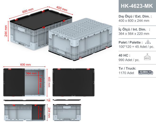 <div><strong>Plastik kapalı ve kilitli kapaklı kasa Dış ebatları: 400x600x245 mm</strong></div>
