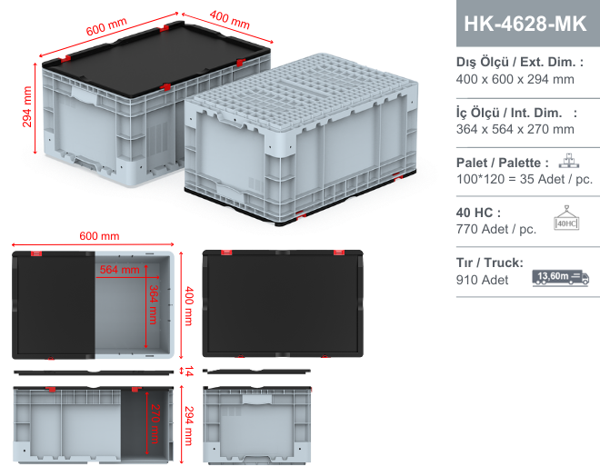 <div><strong>Plastik kapalı ve kilitli kapaklı kasa Dış ebatları: 400x600x295 mm</strong></div>
